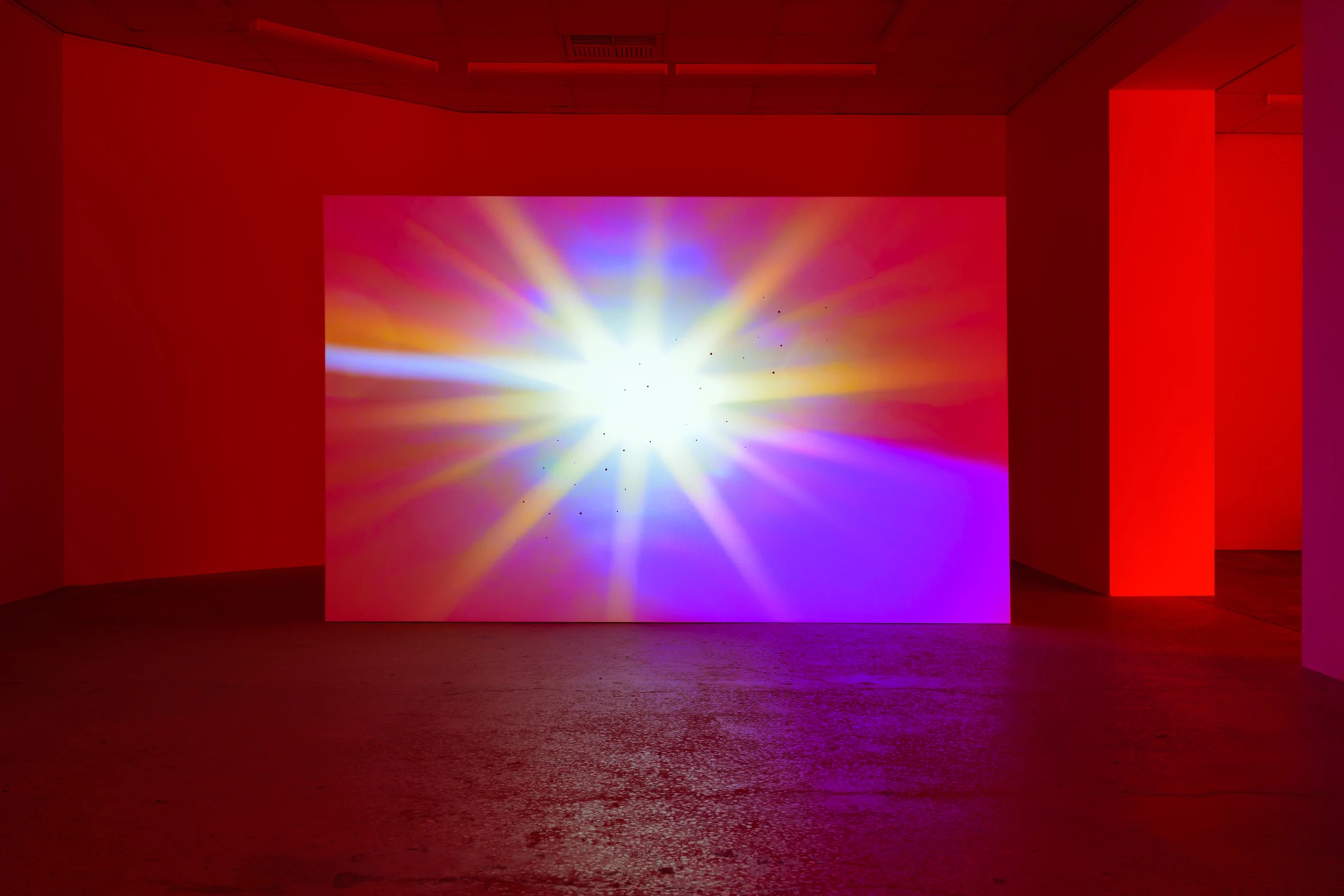 In the monumental projection work, Horizon, the most powerful forces of sun, water and air are abstracted in a large projection of an ‘idyllic’ sunset. The horizontal plane shifts and with it the sun seemingly crashes or sinks, gravity is subverted, during the process of which the viewer is decentered from human centric perspective, triggering sensation in the body whilst also hinting at climatic catastrophe. This reveals perception as a device that we not only use to orientate ourselves in the world, but also to locate ourselves.