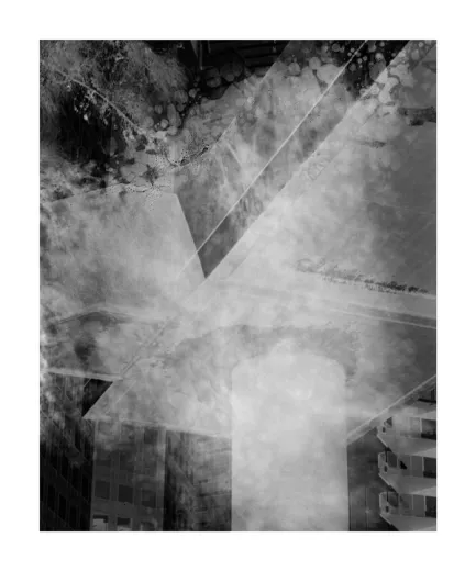 Completing the installation is a suite of handprinted darkroom photographs from the SleepWalker series. Rees views photographic film as having an analogous relationship to altered states of consciousness or altered states of seeing. Images plucked from memories, leaving chemical traces of the world of appearances, which passes by like a ghostly apparition. Mental images that appear in one’s head when drifting into sleep (the hypnagogic state) almost appear as if in black and white, or white as foreground and black as background like a film negative, in truth is not so much that we see in black and white during this stage, but rather that there is a distinct lack of colour in the realm of shadows.