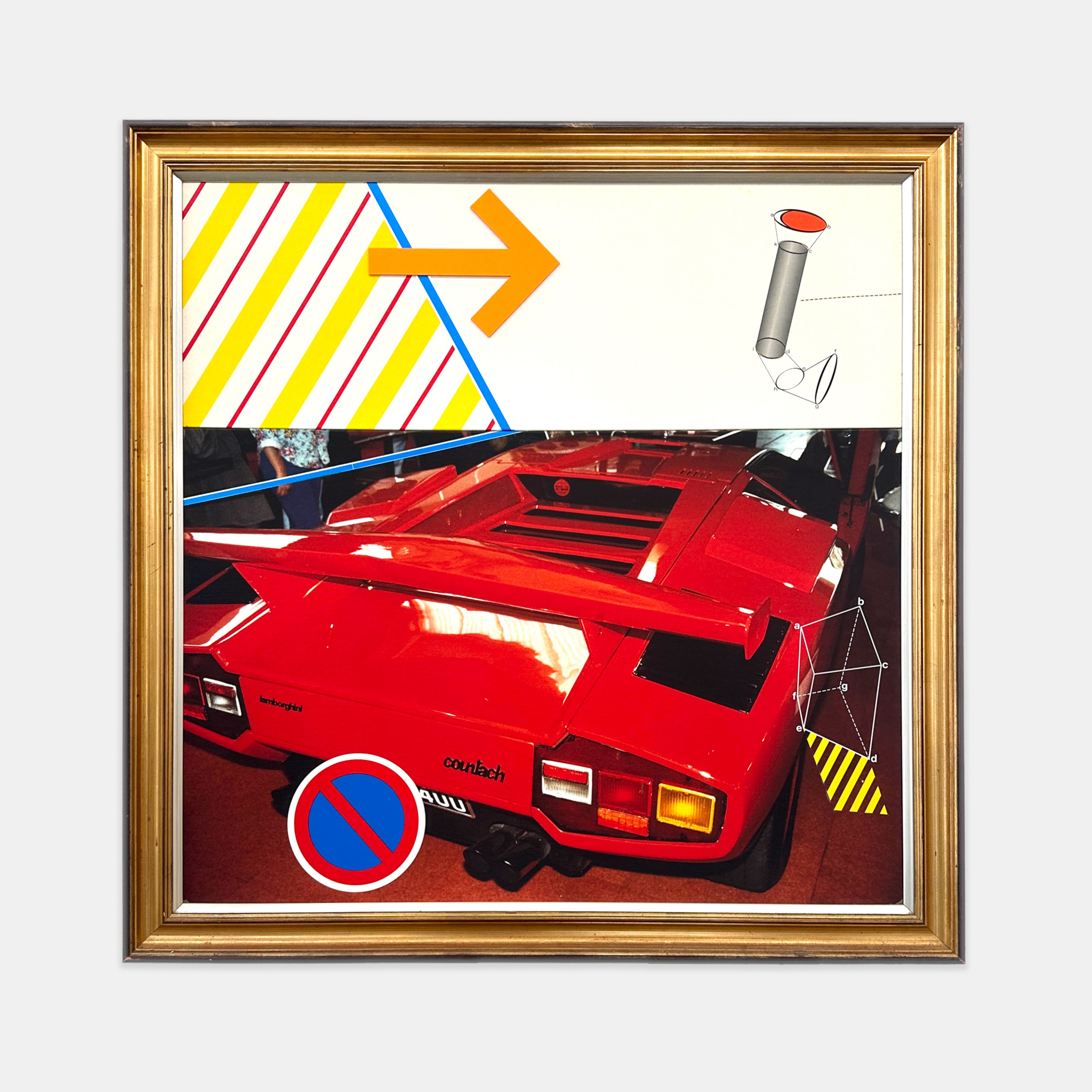Lambo with Orange Arrow, 1987 Canvas laminated photographs, mixed media 116.5 × 116 cm