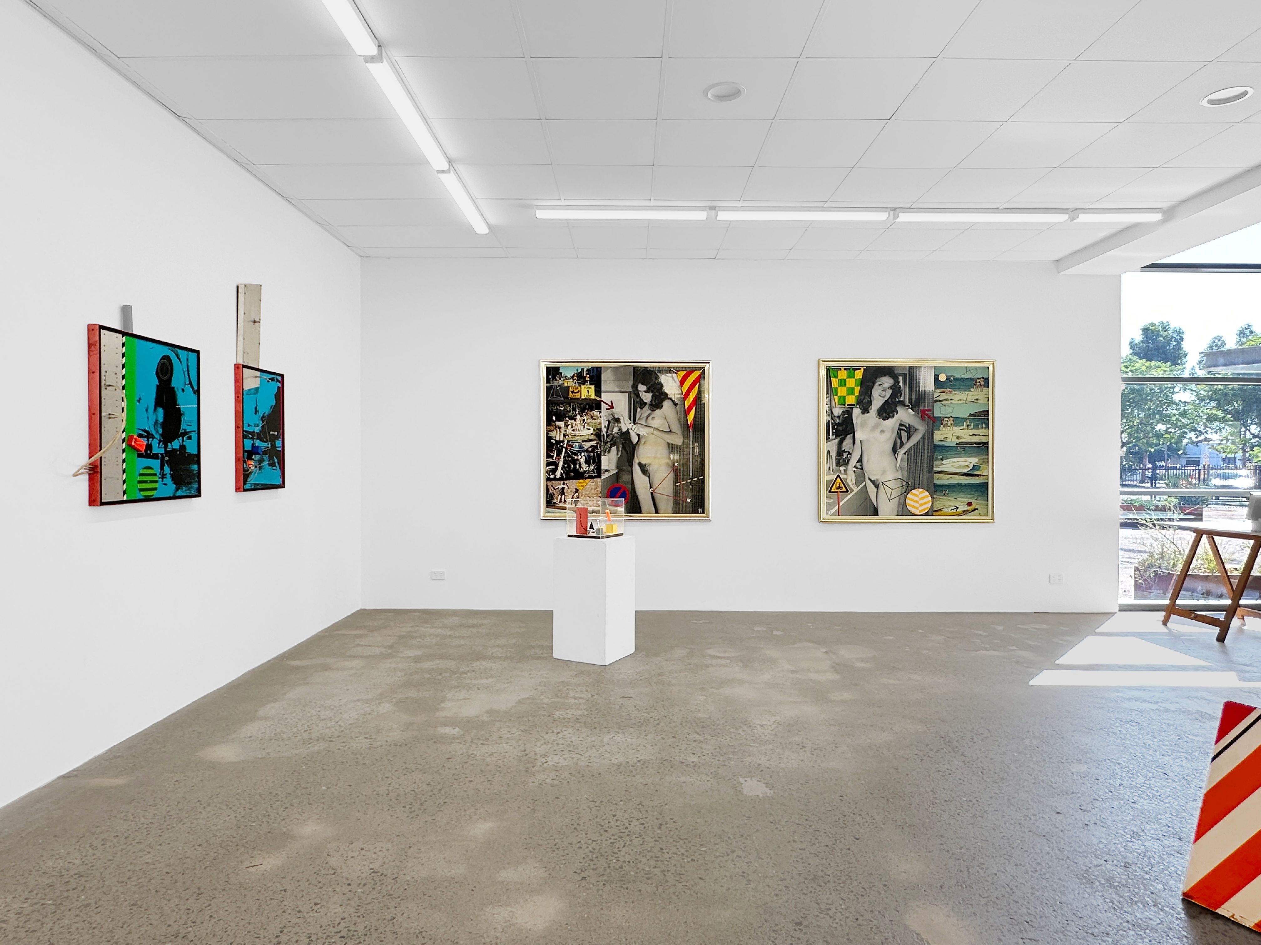 Do you want a lift 2 the beach?, 1983 Plastic, cloth, metal, nylon cord, and decals on type c photographs on board 131 × 141 cm