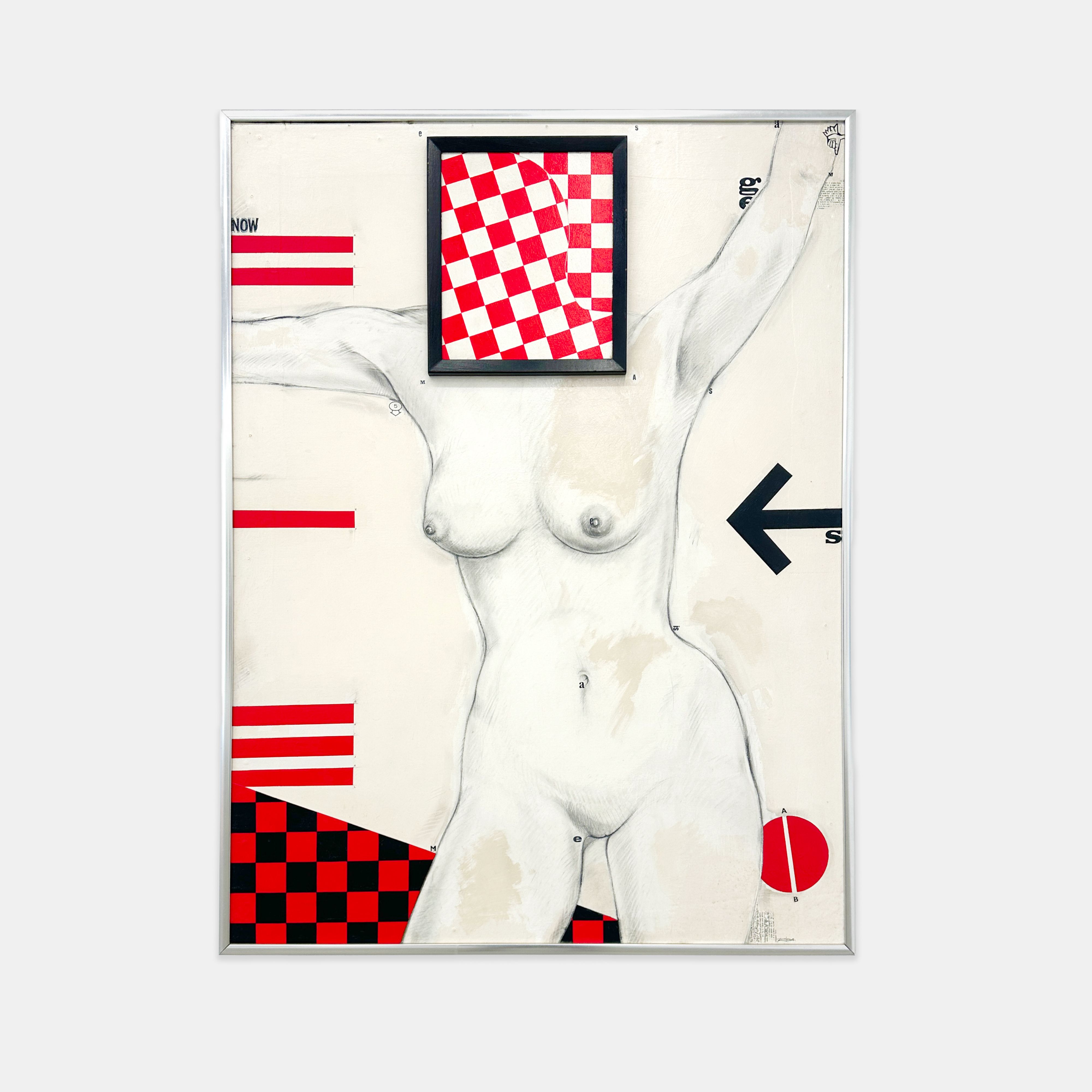 Title Unknown, c.1972 Framed drawing on paper with assemblage elements 59 × 79 cm