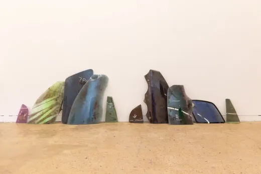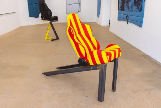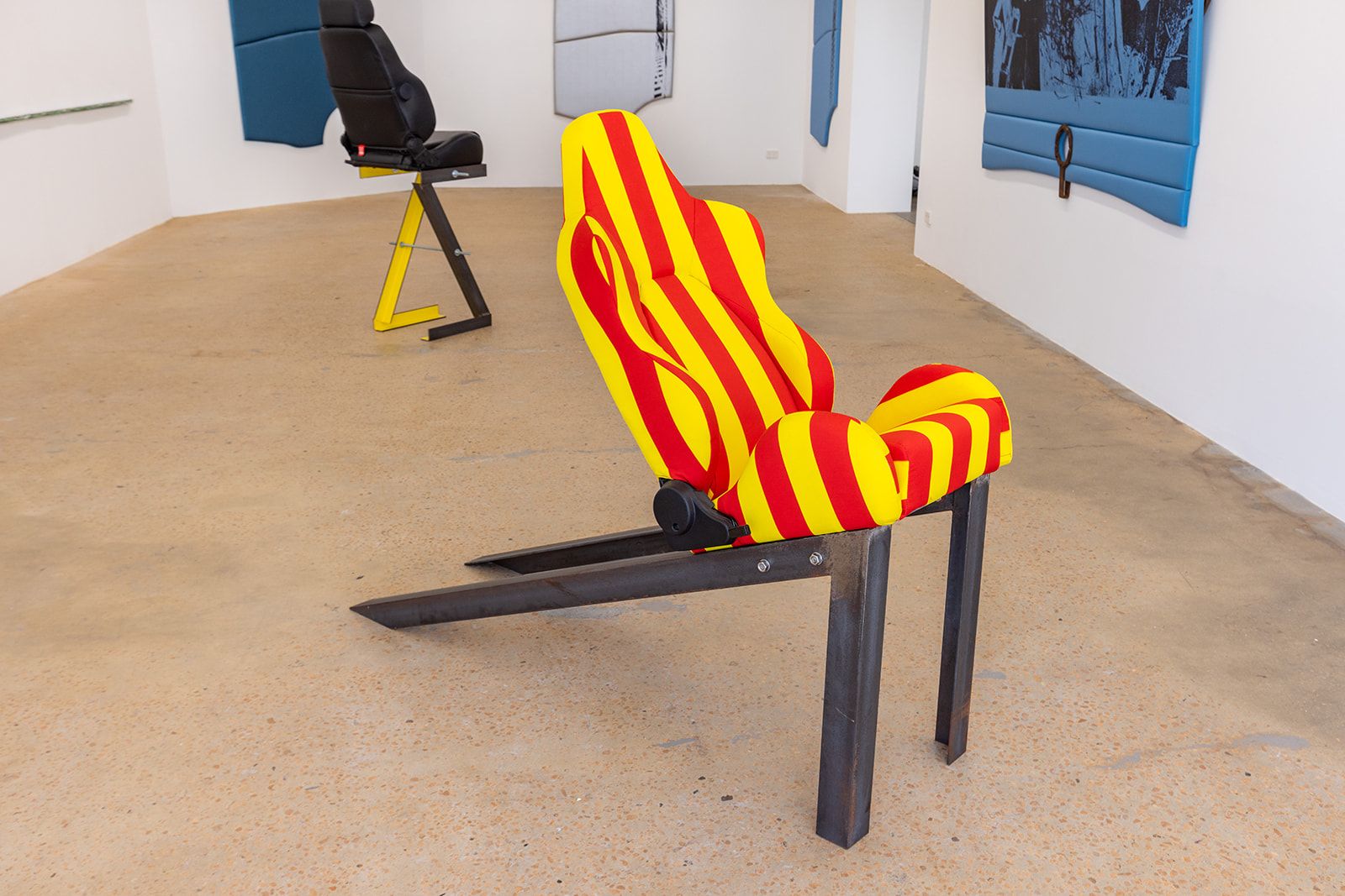 This exhibition takes its cue from the history of the NAP Contemporary building, which used to be a Volkswagen salesroom established by NAP co-director Riley Davison's family. The exhibition includes a range of sculptural and wall-based works that reference the form of a car: Burchill/McCamley present two customised car seats with steel bases; Alexandra Peters has included a suite of shaped canvases based on the car doors of Subaru’s Forester line; and Lauren Burrow’s works—originally shown in Milani Gallery’s Carpark Gallery in 2019—are a plaster-cast of a three-metre-long scratch made by a car key (a 1978 Toyota Corolla) and a number of car windows sourced from wrecking yards, which Burrow has embellished with bioglitter and rhinestones.