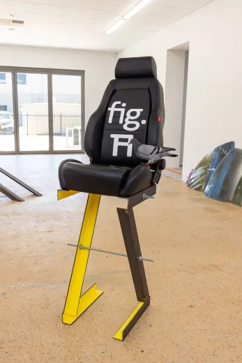 The form of Burchill/McCamley’s works Figure A (2016) and Autorecliner (2015)—free-standing car seats liberated from their ‘mobile cockpits’—are reminiscent of crash-test dummies. Figure A also references 20th-century Dutch designer Gerrit Rietvield’s famous zig-zag chair (1934) through its steel base, as well as Marcel Broodthaers’ Musée d’Arte Moderne Department des Aigles (1972) via its taxidermied pigeon perched on the black leatherette seat. The pigeon, however, is the inverse symbol of Broodthaers’ eagle, the latter of which appears in so much heraldry—it being a hunting bird associated with leadership, vision, and thus powerful families and nations. The pigeon, by contrast, is decisively common—maligned by property owners who install pigeon spikes to deter their nesting. If the eagle connotes blue skies and mountain ranges, the pigeon connotes concrete and steel postindustrial areas (like carparks and warehouses) that are hostile to most other forms of life.
