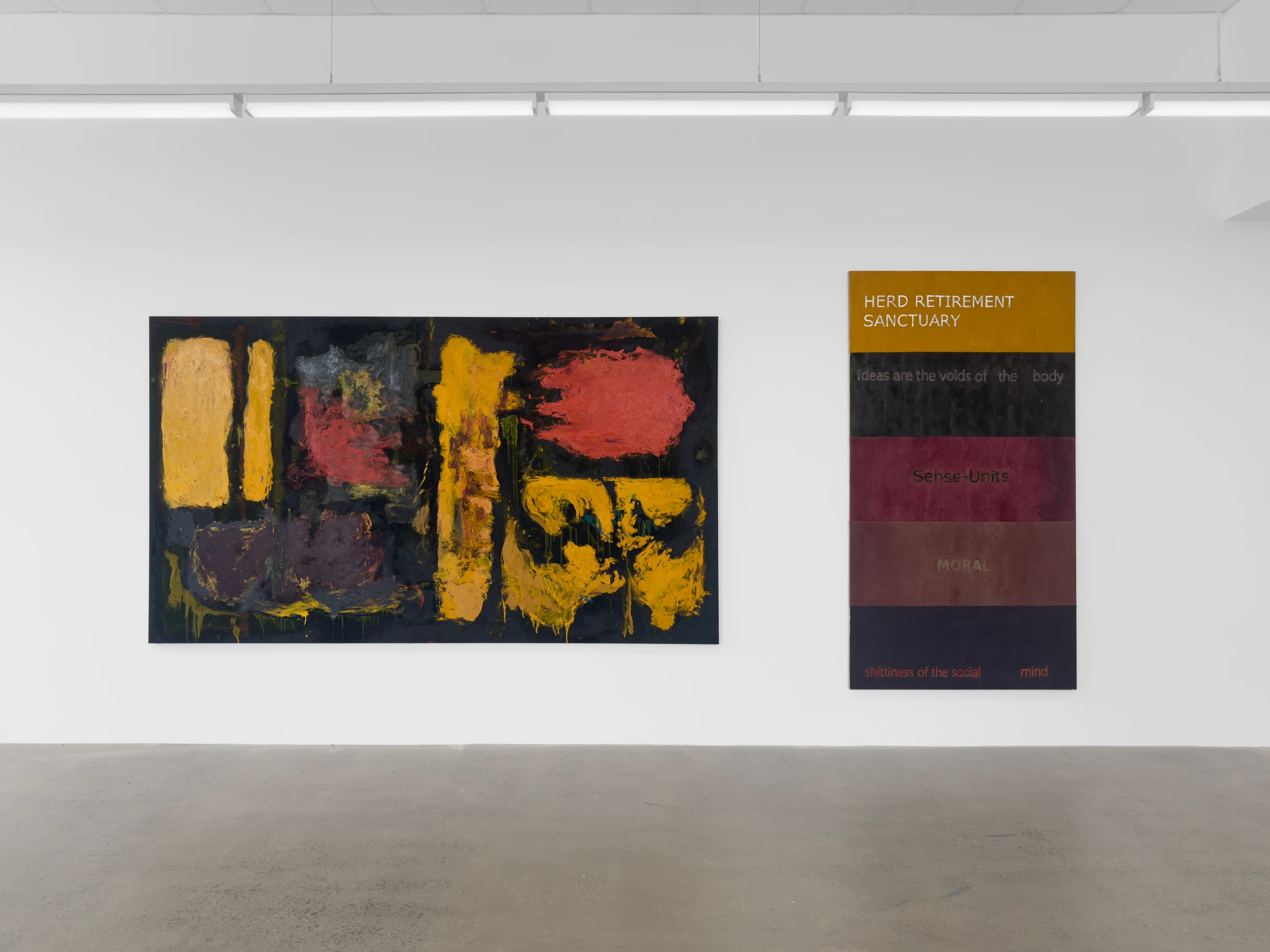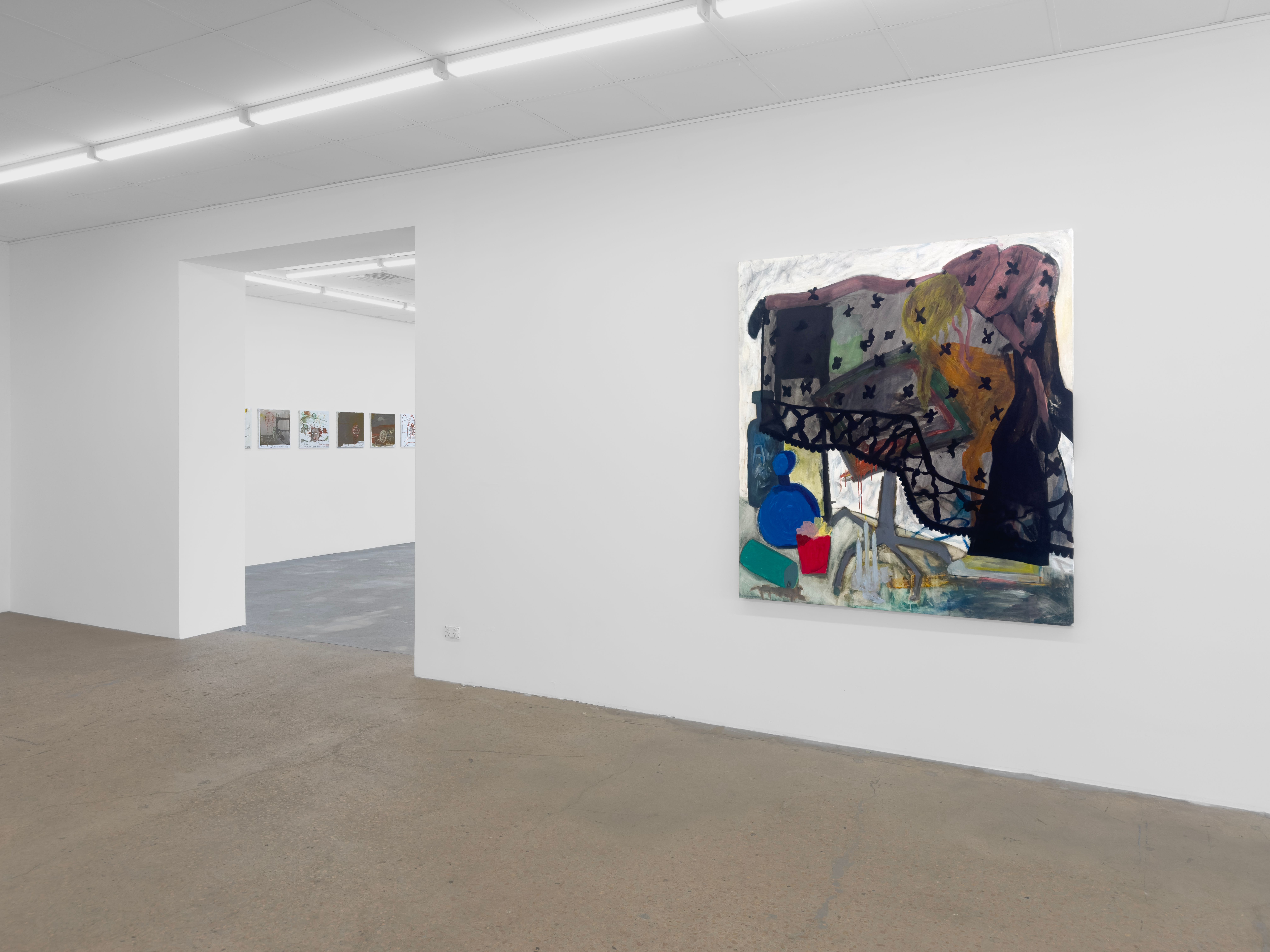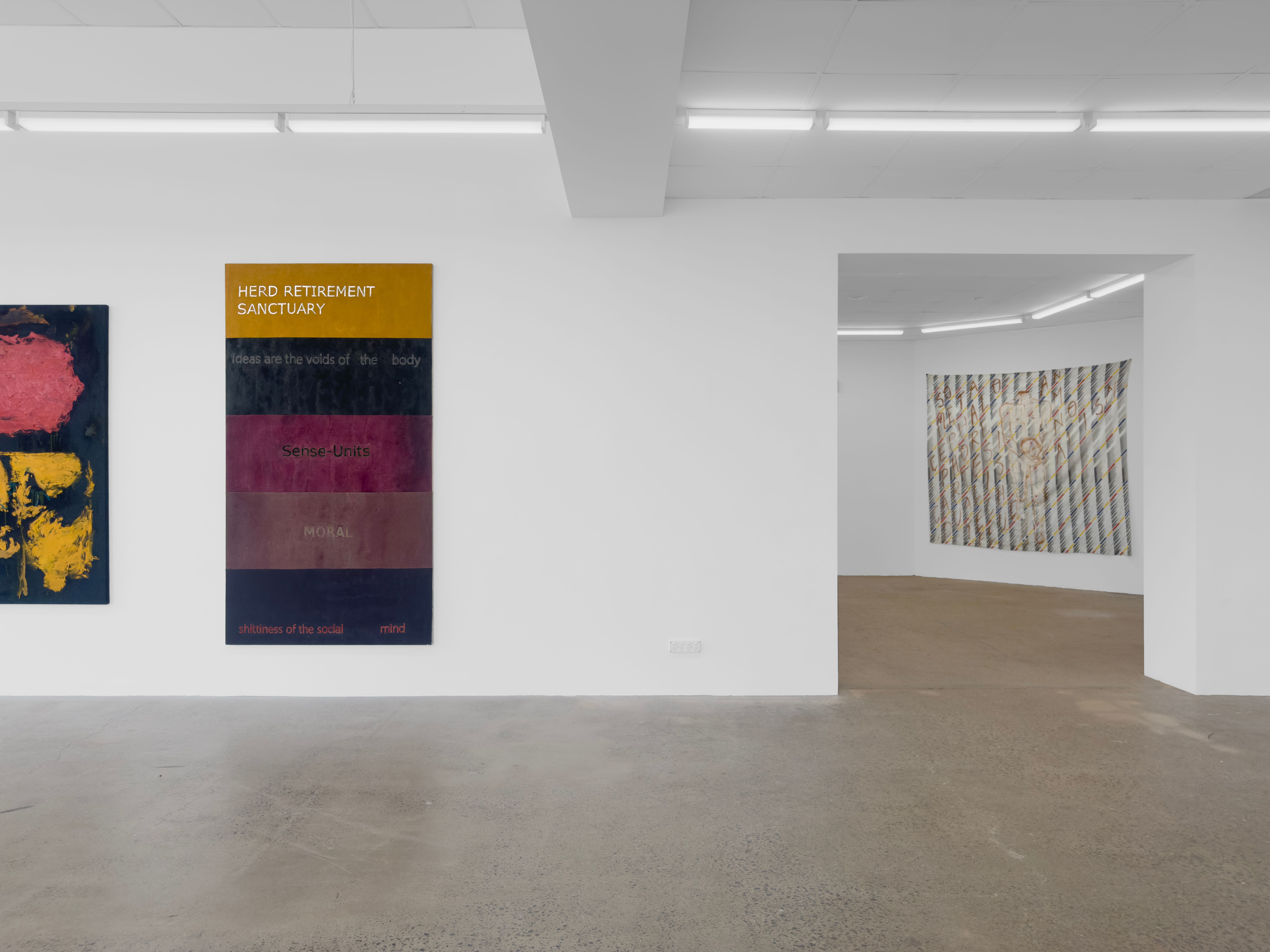 Josey Kidd-Crowe’s abstractions exist in a markedly less representational space. There’s a de Kooningesque freedom in some of his newer works, whereas clearer signifiers abound in earlier ones. He also incorporates text, though linguistic meaning and grammar are upended. Instead, Kidd-Crowe treats letters and words as open material to be manipulated through compositional structure and painterly urges. A press release for his 2020 exhibition at West Space Offsite in Melbourne aptly characterizes his output, asserting that his works “expose the process of painting without falling into reductionism.” It becomes clear, then, that Kidd-Crowe continues to refine a system through which unbidden source material is molded into a discrete pictorial ecosystem.