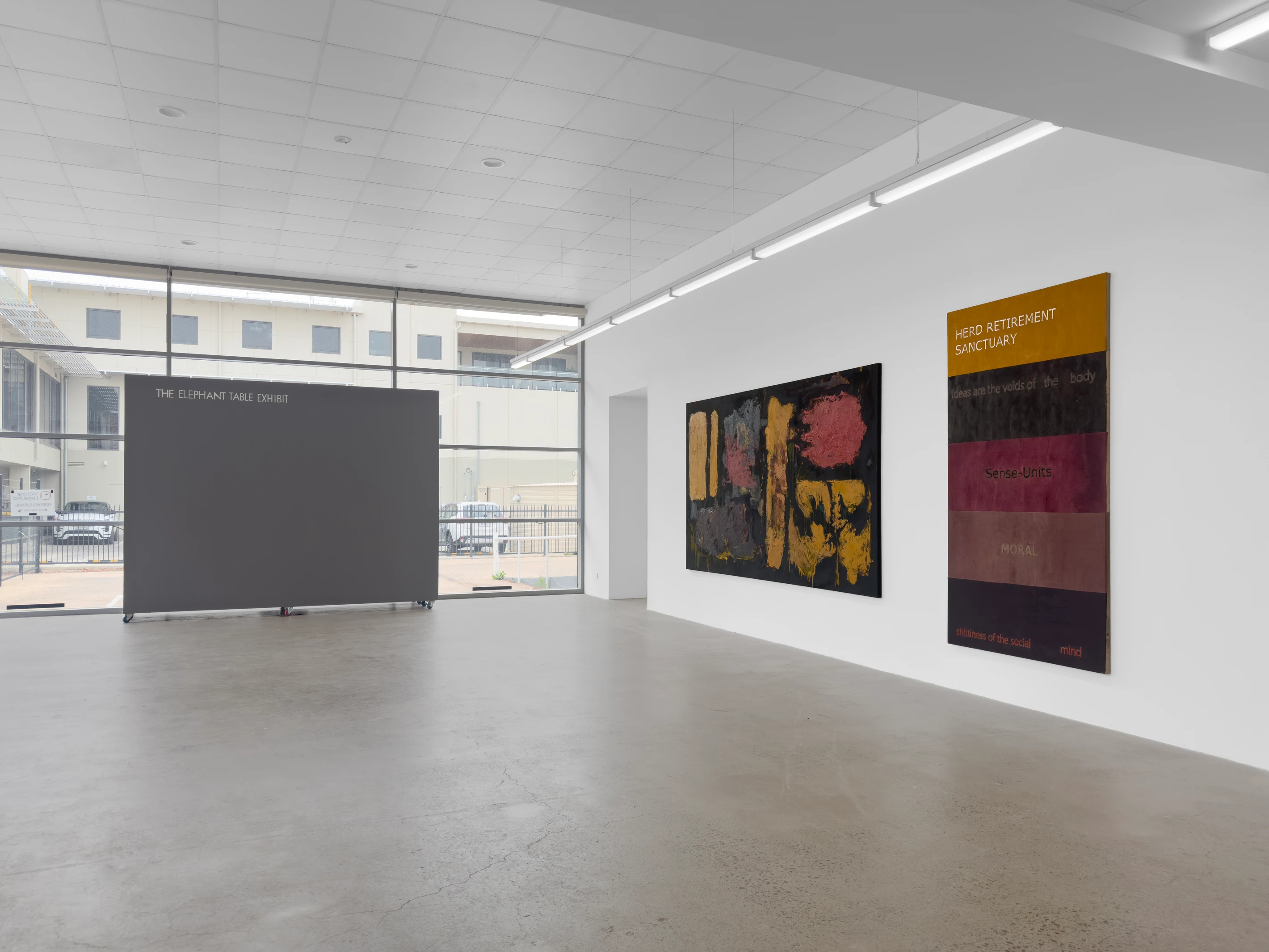 “The Elephant Table Exhibition” brings together a group of artists who each temper the picture world through compositions that sit at a slight kilter. As such, currents of strangeness proliferate at different frequencies, subject to the author’s discretion. Perhaps the exhibition’s title can provide a bit of a clue to the stochastic nature of the works on view. Pulled from an aggregated collection of songs, The Elephant Table Album: a compilation of difficult music was assembled in 1983 by the writer Dave Henderson. The result of his endeavors is a haunted sonic landscape Frankensteined together from electronic noises, industrial pulses, and experimental sound play. A similar compiling effort happens here, as disparate practices are brought into tandem. There is no discrete generic undercurrent; instead, overlapping considerations rear their heads. Instead, it presents as an exercise in producing sensational alliances–affinities that firm up over time.