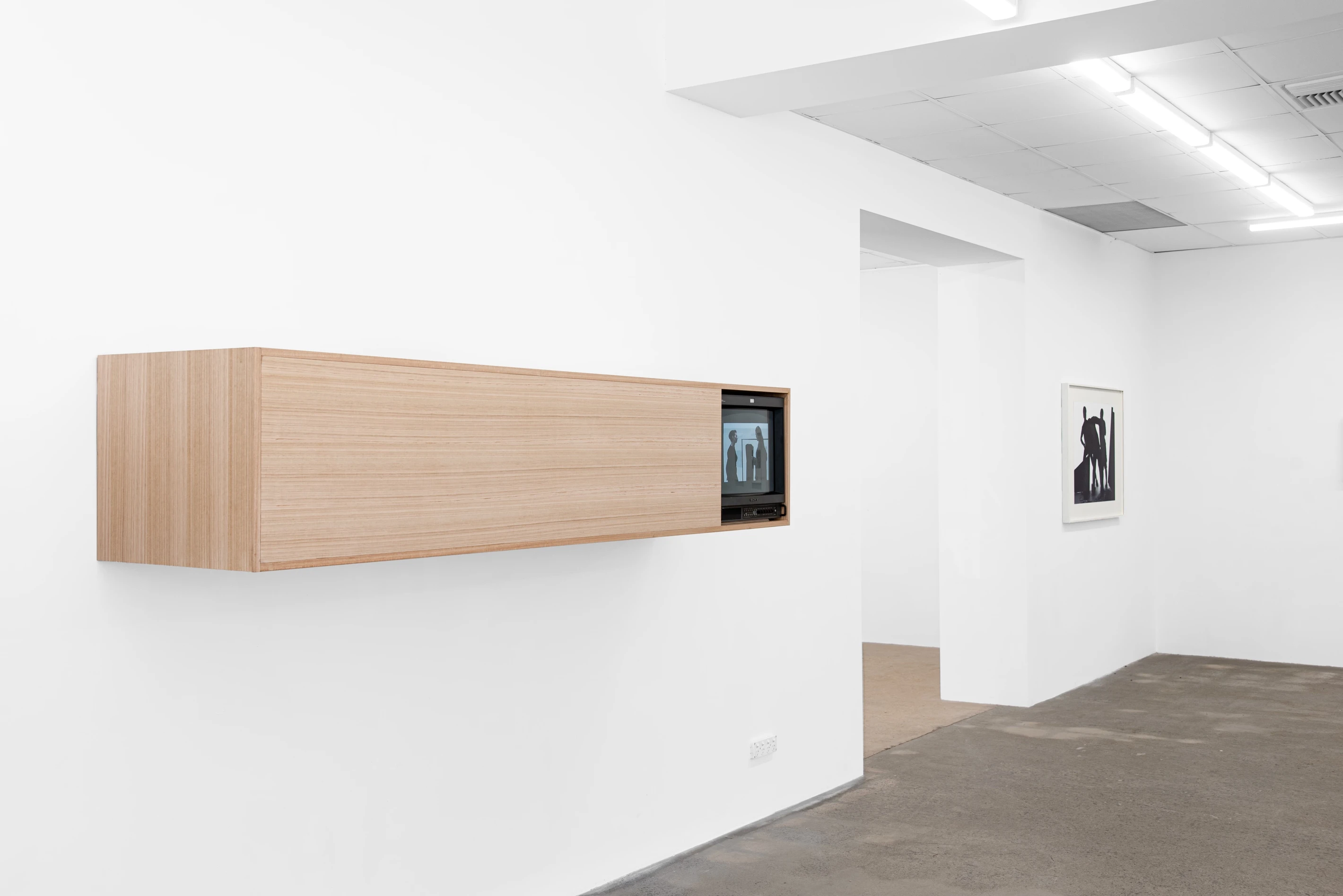 In reference to the dynamic he establishes between the three teenagers, Hardy cites Wilfred Bion’s Experiences in Groups and other papers, written in the 1940s, which synthesises Bion’s psychoanalytic studies and clinical observations of such group dynamics. The analyst describes how anonymity within a group creates disinhibition and a variety of antinormative collective behaviors such as violent crowds and lynch mobs, and presumably muck-up pranks. Indeed Hardy’s stage, with its single minimal set à la Dogville, provides the format of clinical observation, as though we watch through a one-way mirrored window. The chamber piece as a format evokes a kind of observational microscope onto its subjects. The soporific headiness of the droning soundtrack and the starkly silhouetted actors locates us in the “theatre of the mind”, as Freud called dreams. A zone where repressed wishes can be examined through the analytic lens. In both parts of the film, multi-directional desire overwhelms the protagonists; be or be with, love or destroy. Contradictory impulses and neuroses concertina, as in dreams where anxieties and fantasies are compressed. The same applies to Hardy’s exhibition holistically, where the distinction between fiction and documentation is disregarded in favour of the metaphorical potency of both. As with morning analysis of an unsettling dream, metaphorical excavation of Hardy’s works will go as far as we are willing. At the same time Hardy plays with affect (particularly in relation to constructed femininity) to generate an enigmatic tension between laden symbolism and airy artifice. Gazing into a mirror in the Revlon ad, Eva Mendes coos, ‘Nothing is always something.’ - Pip Wallis