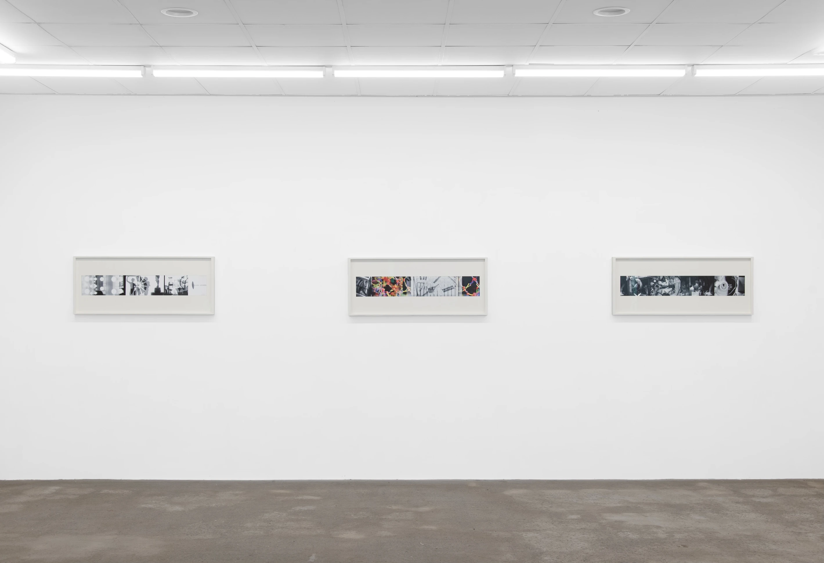 Hardy’s images imbibe this circular logic. They contain narrative clues to nowhere in particular and, with their peculiar specificity, allow the mind to concoct possible scenes and dramas. The black and white composite images invoke surrealist juxtaposition drowsy with symbolism that refuses to attach itself; a clock in pieces, a bunch of feathers, a dressing room mirror. They stretch horizontally with a filmic condensing of time and the implied progression of narrative. The outside-the-frame suggestiveness is especially potent in an image of a hirsute leg resting on a coffee table near a bunch of flowers as white as its white sport sock. The folds of the leather couch and the bent knee make dark creases alluring in the context of the spotless and unremarkable air bnb-esque room.