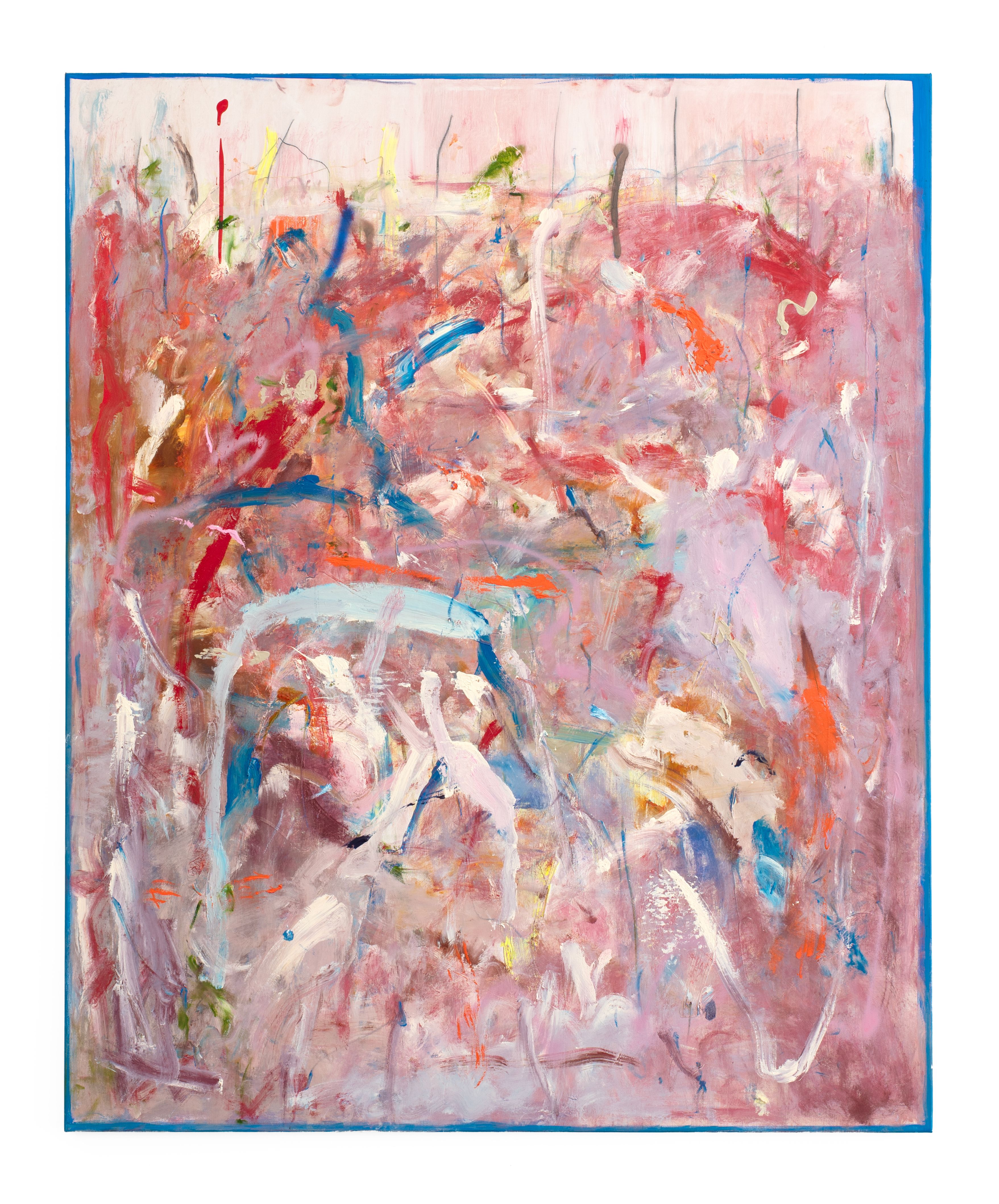 Glue, oil stick, pencils, oil paint, acrylic paint and char- coal on linen