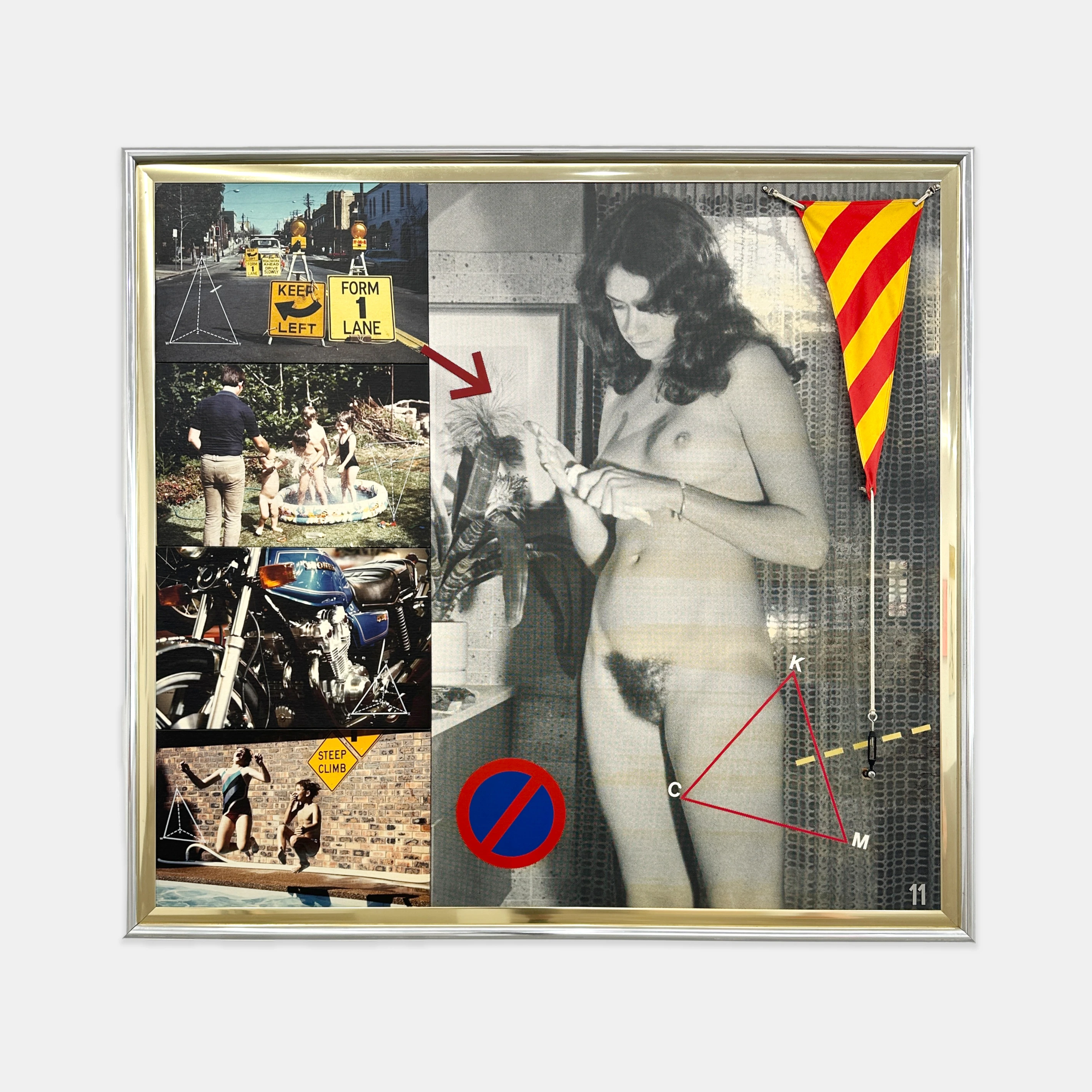 Plastic, cloth, metal, nylon cord, and decals on type c photographs on board