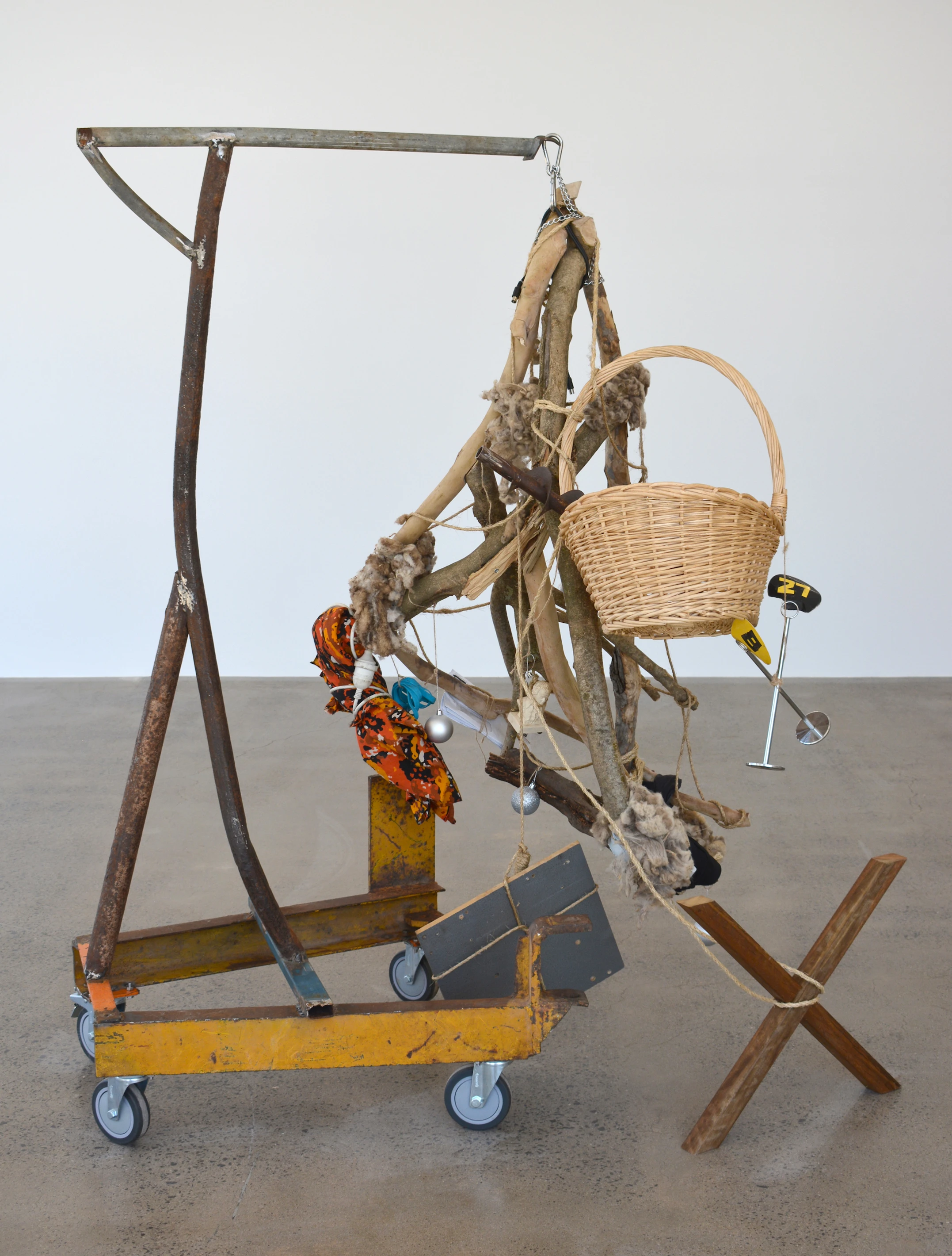 steel, eucalyptus, olive tree, wool, oak, wicker, auger, stolen underpants, Guzman y Gomez table numbers, unopened mail, rope, string, christmas baubles, textile, power cord